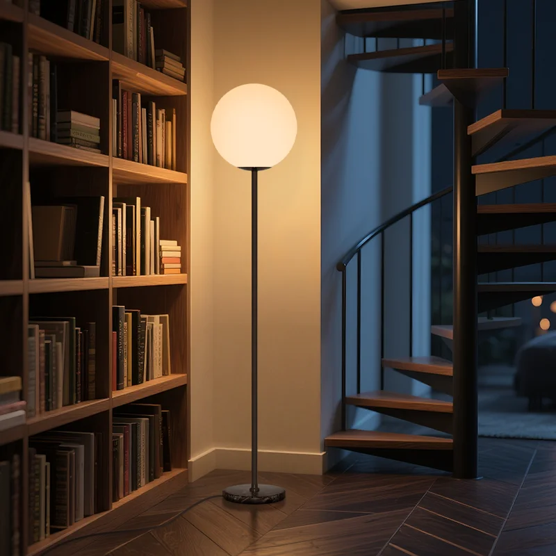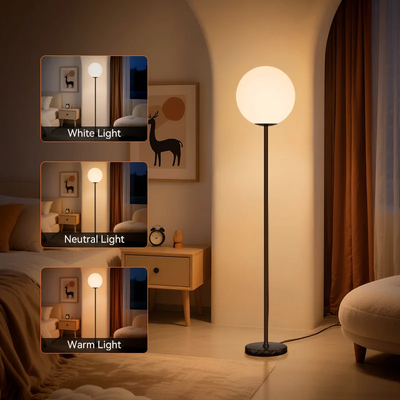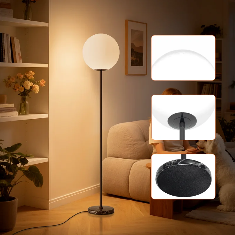 Modern E27 LED Globe Floor Lamp with Frosted Shade and Marble Base for Home & Hotel Decoration Iron Lamp Body